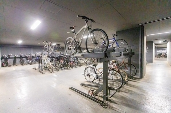 屋内の自転車置き場は明るい照明付きで天候を気にせず利用できます。